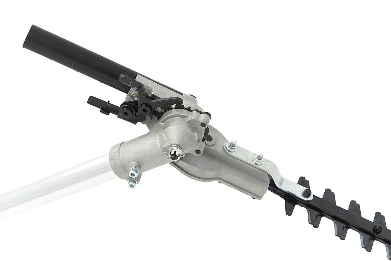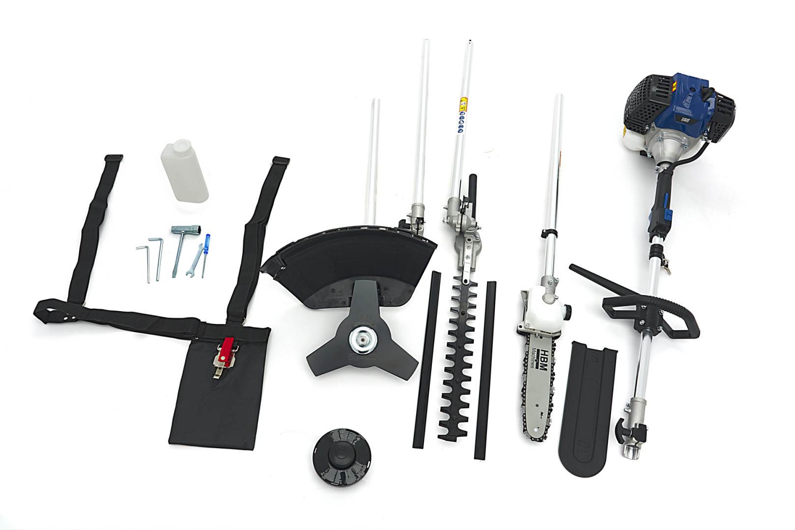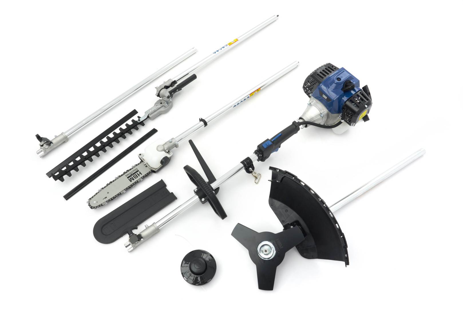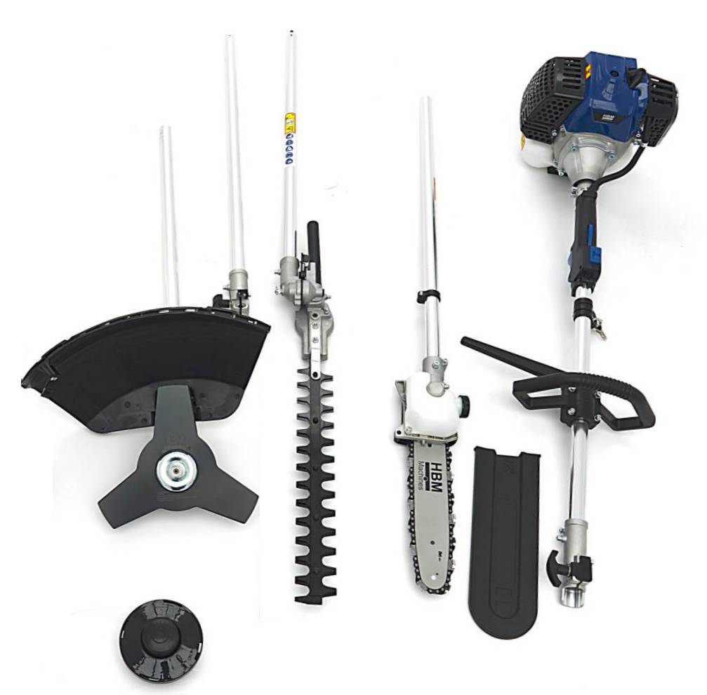 Der Freischneider, der mit einem Kreissägeblatt aus Metall ausgestattet ist, eignet sich ideal zum Schneiden von hartnäckigem Unkraut und Kletterpflanzen mit einem Durchmesser von bis zu 13 mm. Die Grasschere mit Nylon-Schneidkopf eignet sich perfekt für das Schneiden von Rasenkanten und schwer zugänglichen Stellen, während die Heckenschere mit Sägeblatt für das Schneiden von Hecken und Sträuchern mit einem Durchmesser von bis zu 24 mm geeignet ist. Außerdem ist die Kettensäge für das Schneiden von Ästen in Bäumen konzipiert und ermöglicht einen einfachen Zugang zu hohen Ästen.
