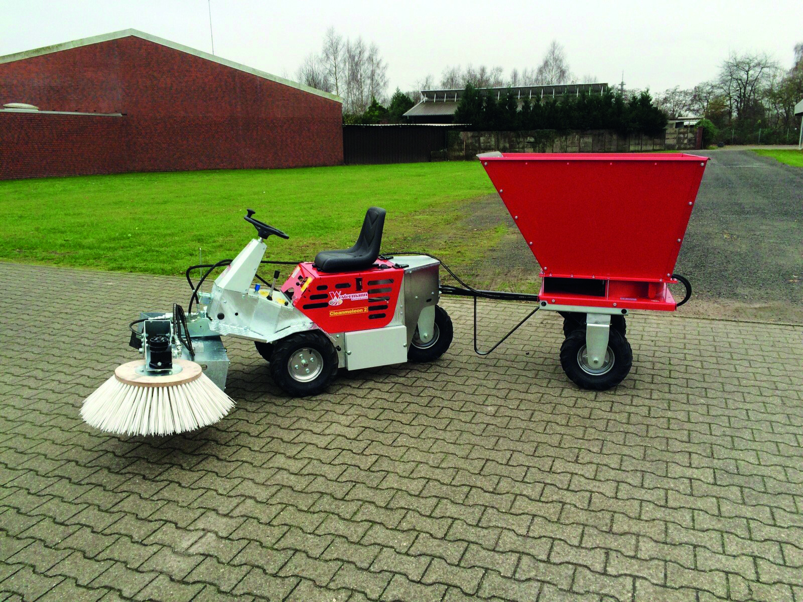 - Rührwerk: Lockert das Streugut für eine gleichmäßige Verteilung