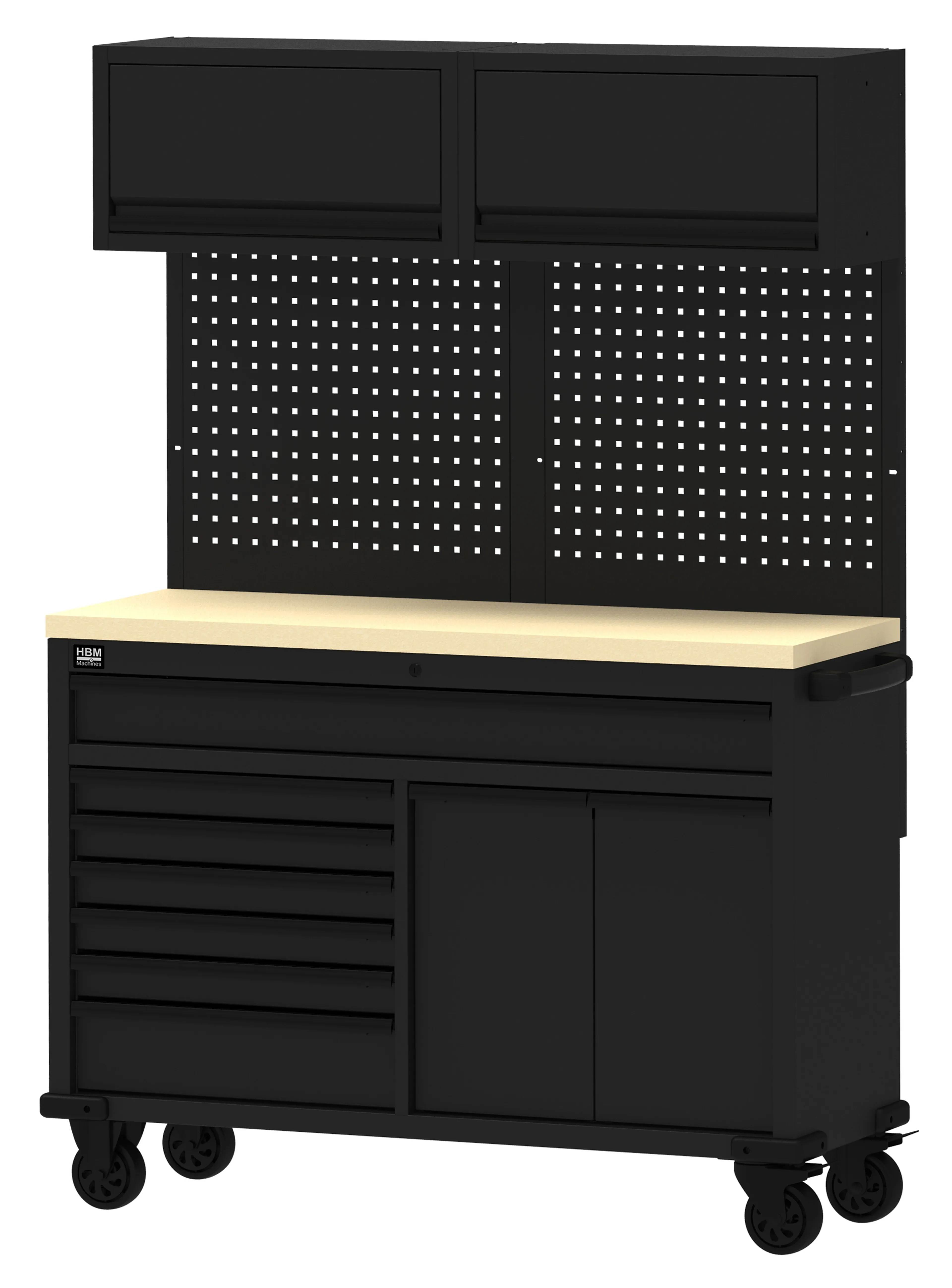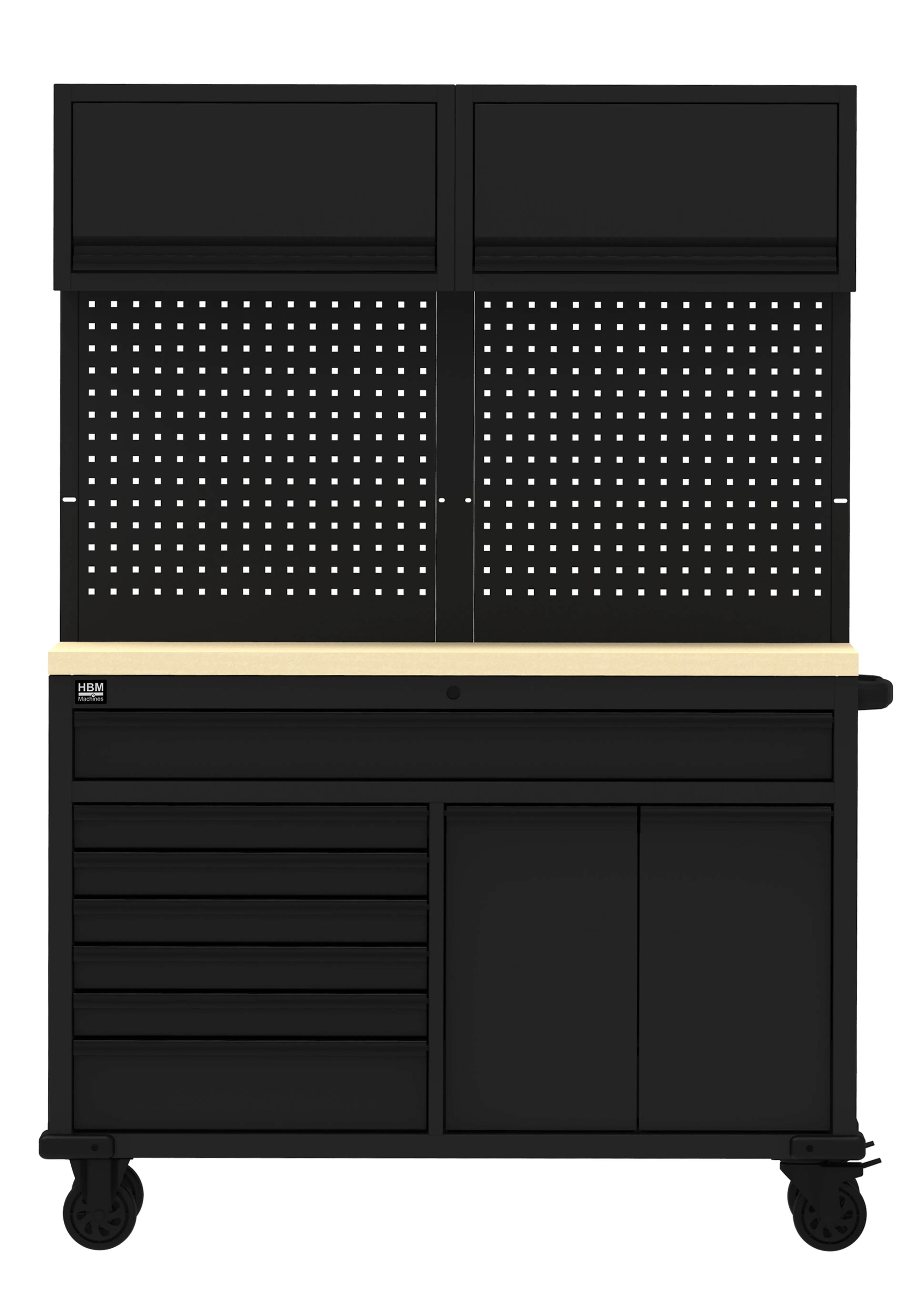 Die mobile Werkbank mit 136 cm Breite ist die ideale Lösung für eine gut organisierte Werkstatt oder Garage. Dank 7 geräumiger Schubladen und einem großzügigen Oberschrank bietet sie viel Platz für Werkzeuge und Zubehör.
