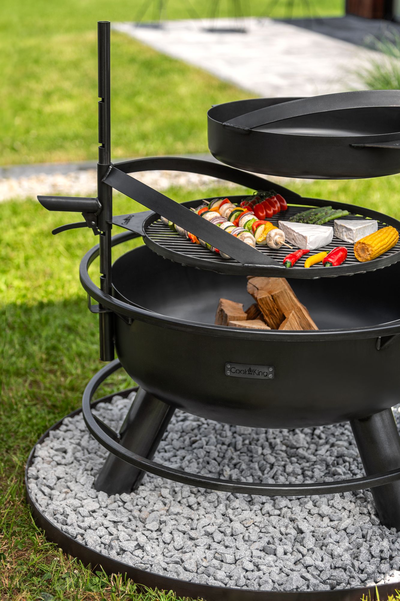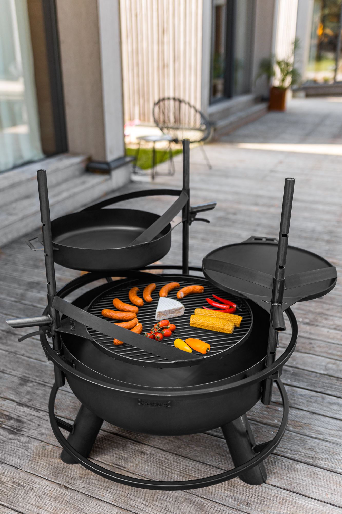 Viele Nutzungsmöglichkeiten bietet diese Feuerschale BANDITO (Ø60cm) mit flexibel einstellbarem Grillrost (Ø50cm) - perfekt für den gemütlichen Grillabend im Garten!