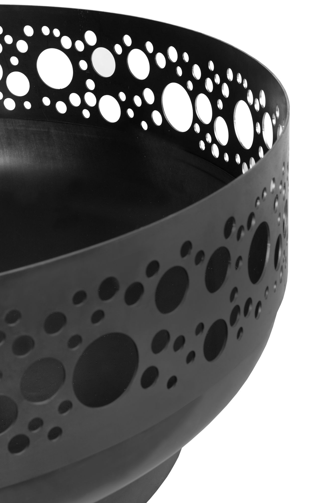 Die Form der Feuerschale verhindert einen Funkenflug, bei starkem Wind, durch das brennende Holz. Wenn das Feuer in der Feuerschale brennt, ist ein einmaliger und unwiederholbarer Feuerschein zu sehen, der aus dem ausgeschnittenen Rand herauskommt. Diese Feuerschale ist aus rohem Stahl angefertigt, weshalb sich deren Farbton von der Farbe des auf den Fotos dargestellten Produkts unterscheiden kann. Das ist eine natürliche Eigenschaft von Stahl, die keinen negativen Einfluss auf die Funktionalität und Beständigkeit des Erzeugnisses hat.