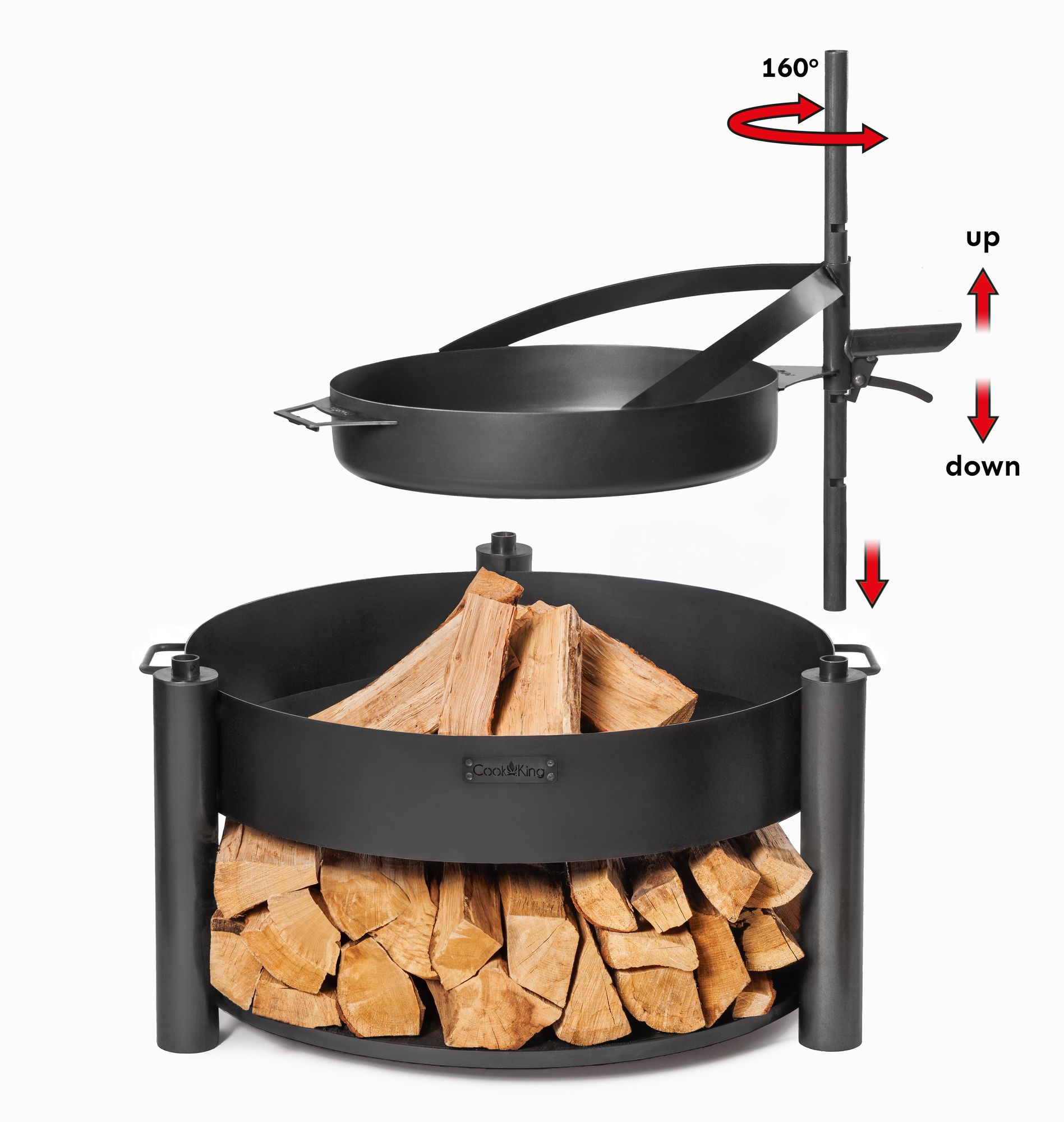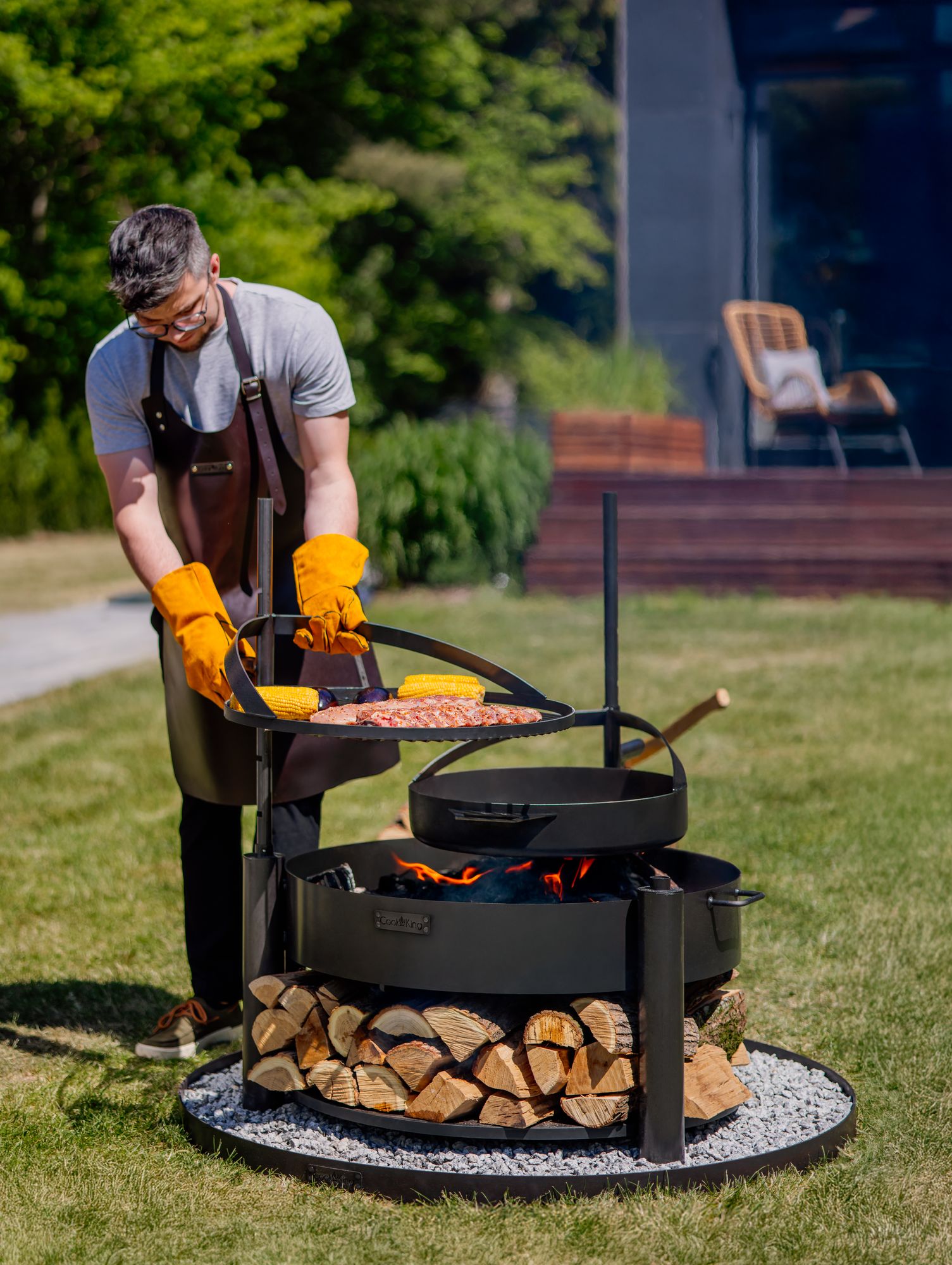 Die erweiterte Feuerstelle ist eine in Europa gefertigte Lösung, die für sicheres, komfortables und vielseitiges Grillen über offenem Feuer konzipiert wurde. Mit der Feuerschale und diesem Zubehör können Sie eine klassische Feuerstelle mit den Möglichkeiten zum Grillen und Braten verbinden.