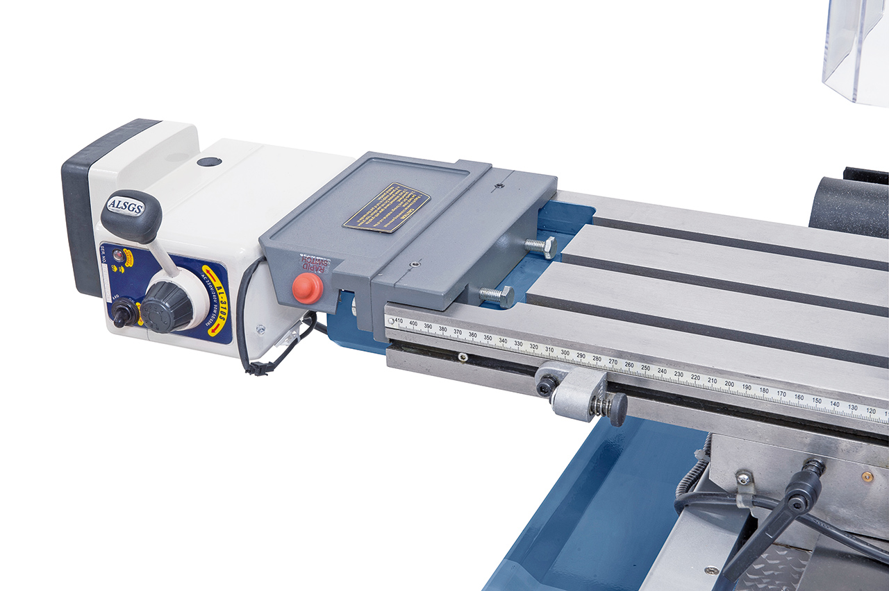 | Lieferumfang | Fräsmaschine Zahnkranz Bohrfutter 3-16mm / B16 Bohrfutterdorn MK3 / B16 Anzugsspindel M12 Schutzabdeckung Bedienerwerkzeug nur bei der Fräsmaschine mit Digitalanzeige (BN-02-1117) Digitalanzeigesystem ES-12V mit LCD-Display x - Achsenvorschub AL450D |