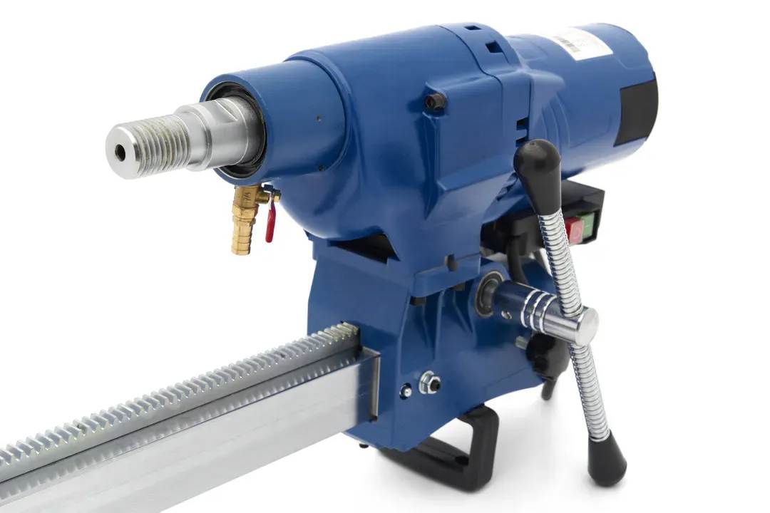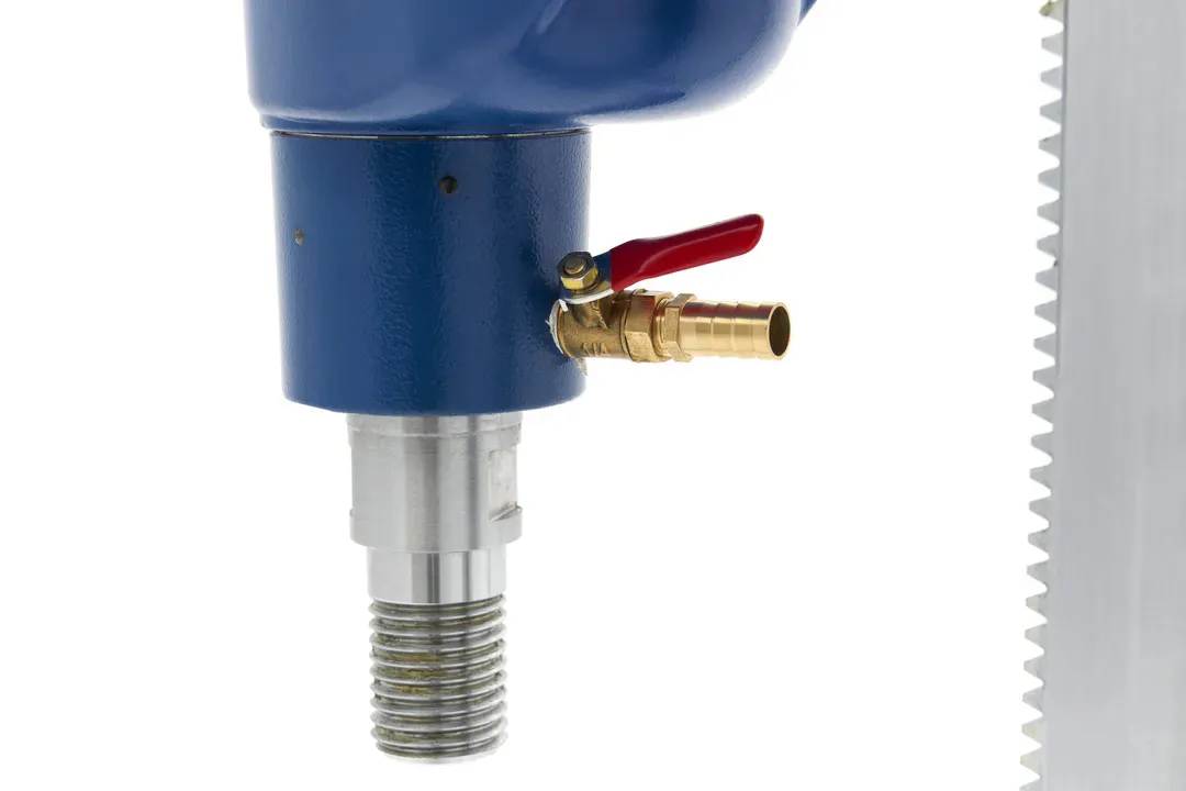 Ein Kunstoffgriff auf der Rückseite des Bohreraufsatzes sorgt für noch mehr Halt beim Arbeiten. Dadurch können Sie präziser Bohren und die Verletzungsgefahr verringern. Der Kernbohrer verfügt über eine Kühlmitteleinrichtung, deren Wasserversorgung in die Antriebswelle der Maschine integriert ist und einfach angeschlossen werden kann. Außerdem erhalten Sie mit der Bohrmaschine wichtiges Zubehör, darunter einen Zentrierstift, einen Satz Kohlebürsten und mehr.