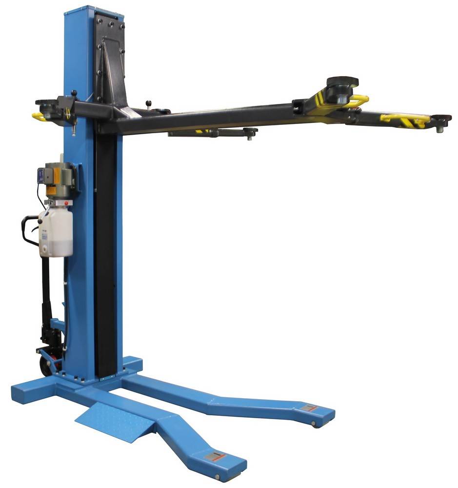 Diese elektrische Hebebühne mit 2200 Watt und 230 Volt ist mit der einarmigen Hebevorrichtung ideal für mobile Arbeiten in Garage oder Werkstatt!