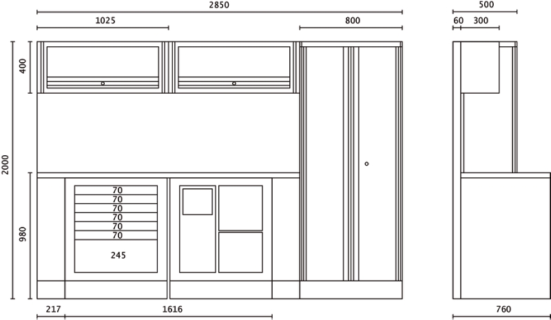 | Produktabmessungen | 2850 x 760 x 2000 mm |