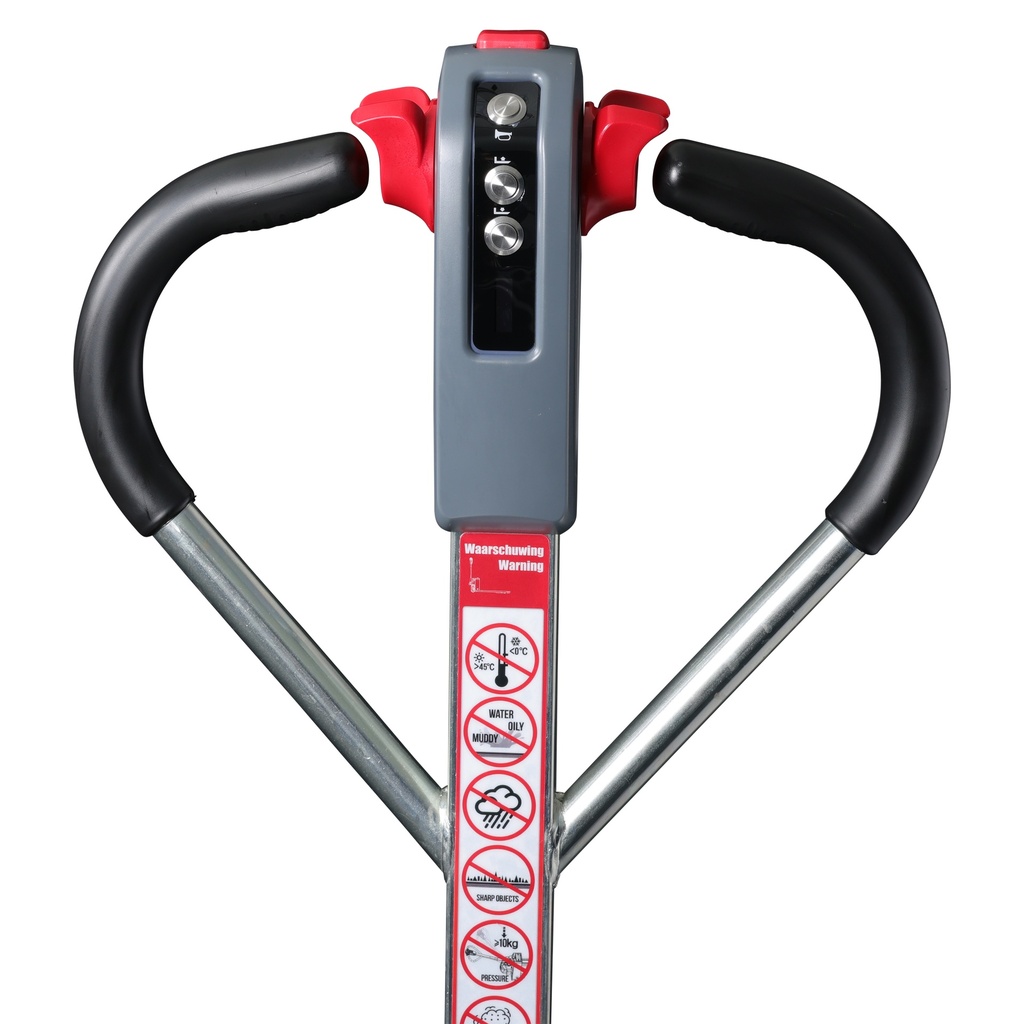 Die Bedienung erfolgt über die Deichsel, mit elektrischem Fahren, Heben und Senken, wodurch der körperliche Aufwand beim Palettentransport reduziert wird. Der Antrieb erfolgt über einen bürstenlosen Motor, um den Wartungsaufwand zu minimieren, während Polyurethanräder für gute Traktion auf glatten Untergründen sorgen.