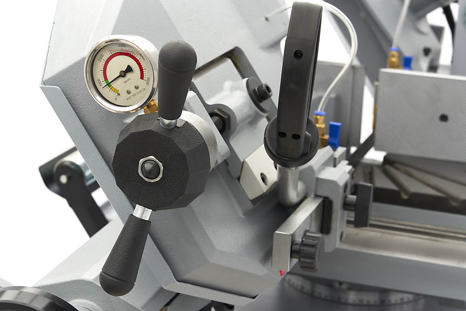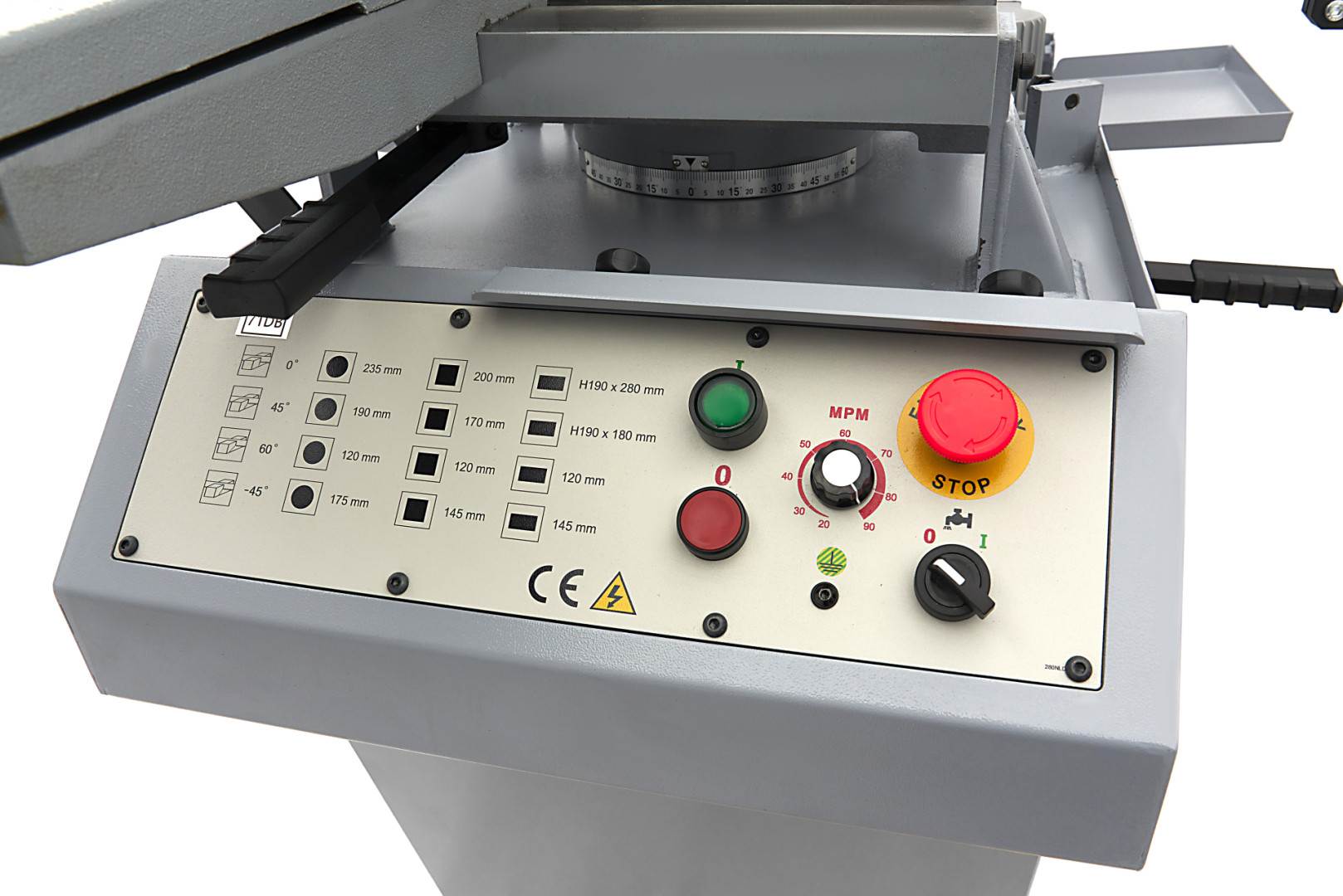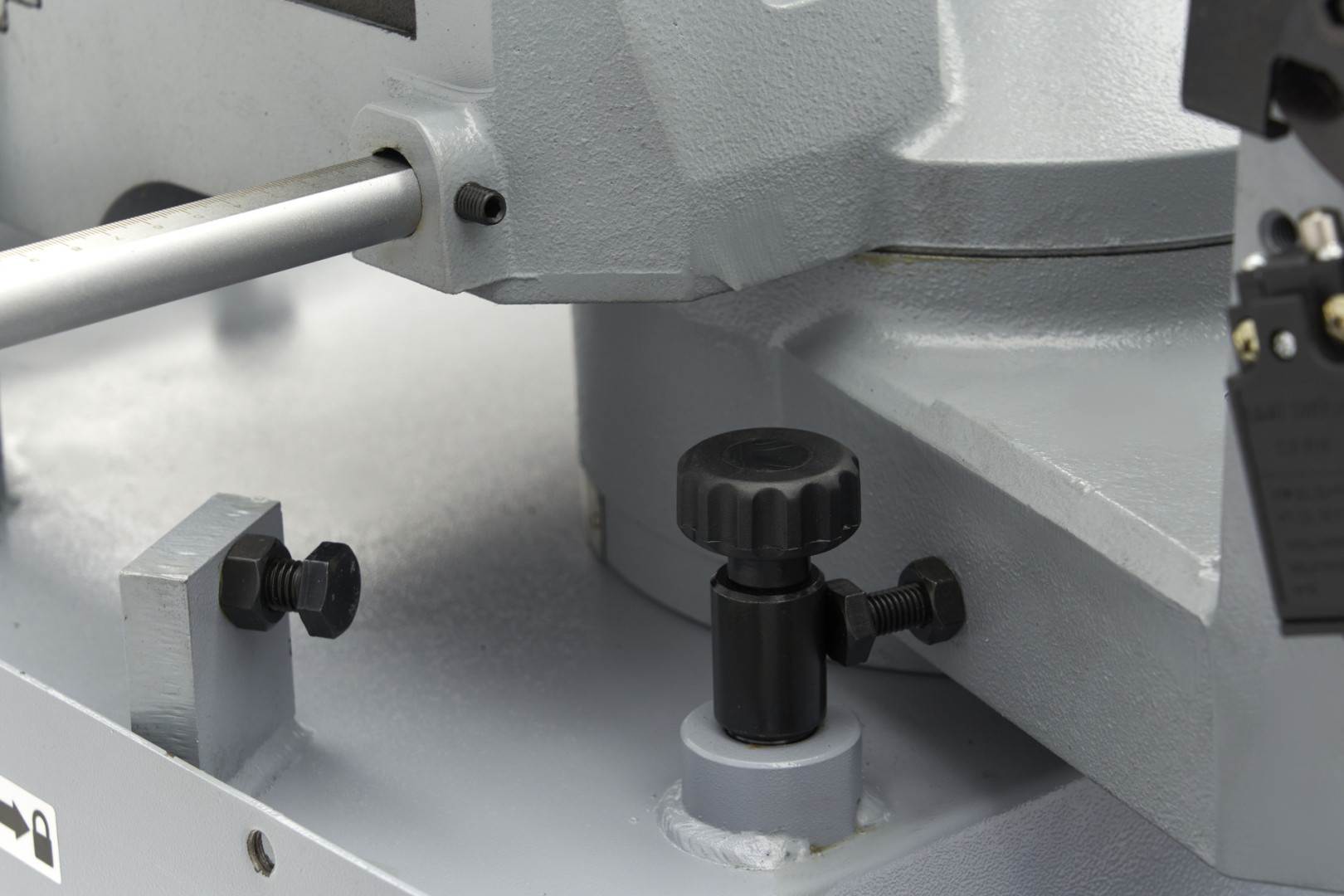Mit ihrer robusten Konstruktion und ihren fortschrittlichen Funktionen ist diese Säge ein Muss für jede Werkstatt. Die Säge ist mit mehreren wichtigen Komponenten ausgestattet, darunter ein Not-Aus-Schalter, ein Nockenschalter, eine Pumpentaste, ein Ein/Aus-Schalter und ein Transformator. Mit diesen Bedienelementen können Sie die Säge einfach und präzise bedienen, um eine optimale Leistung zu erzielen. Mit einer Arbeitshöhe von 990 mm und einer robusten Konstruktion bietet diese Säge Stabilität und Langlebigkeit im Einsatz.