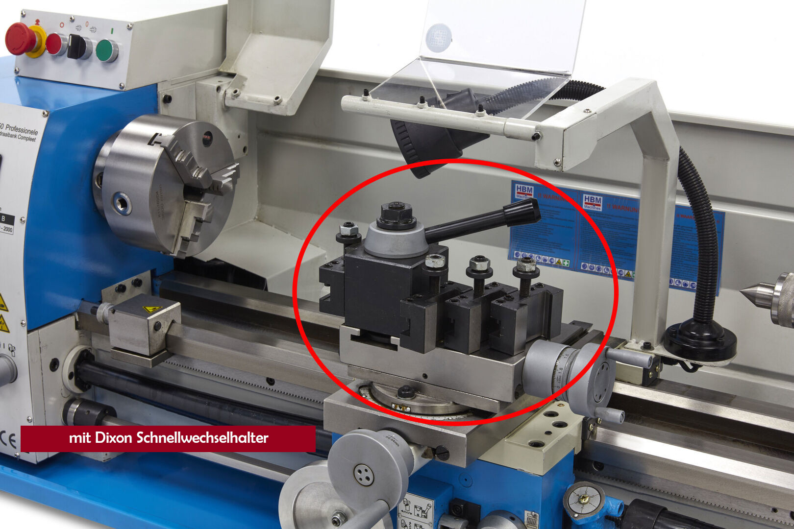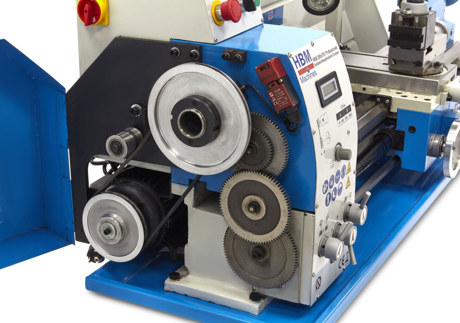 Selbstverständlich ist diese Drehmaschine mit einem Not-Aus-Taster, einer klappbaren Schutzabdeckung an der feststehenden Spitze, einer Rückwand und einer Auffangwanne für Späne ausgestattet. Der Schrank für die Wechselrollen ist durch einen Hebel leicht zu öffnen, sodass keine weiteren Werkzeuge benötigt werden. Die Lieferung wird mit einem (unabhängigen) Vierbacken Drehfutter und einer Aufspannplatte abgeschlossen.