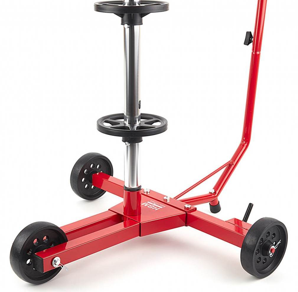 Das Gestell ist ist leicht zu bewegen und die Räder können mit einem Radschloss festgestellt werden. Für die Lagerung bei Nichtnutzung ist der Ständer leicht zu zerlegen und zu lagern.