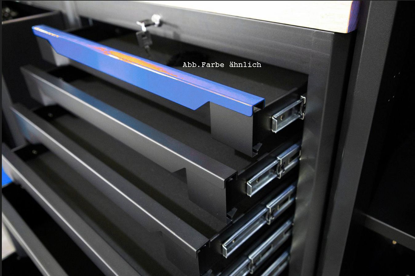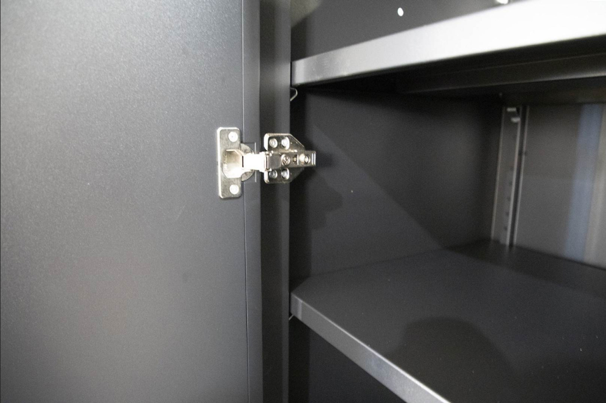 - Individuell abschließbare Komponenten: Schubladen und Schränke lassen sich separat sichern (inkl. Ersatzschlüsseln).
