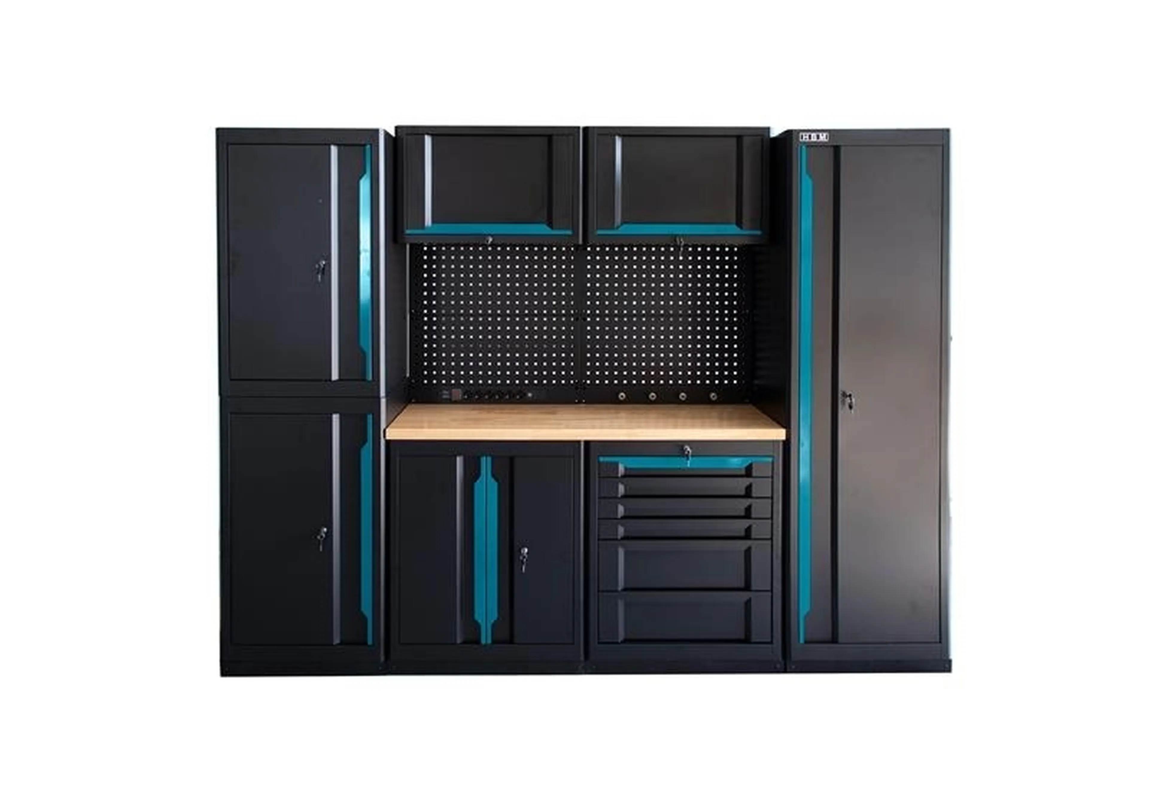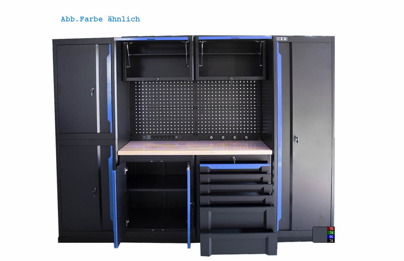 Das beschriebene 10-teilige modulare Werkstattsystem in Schwarz und Blau überzeugt durch hochwertige Verarbeitung, praktische Funktionen und ein professionelles Design.