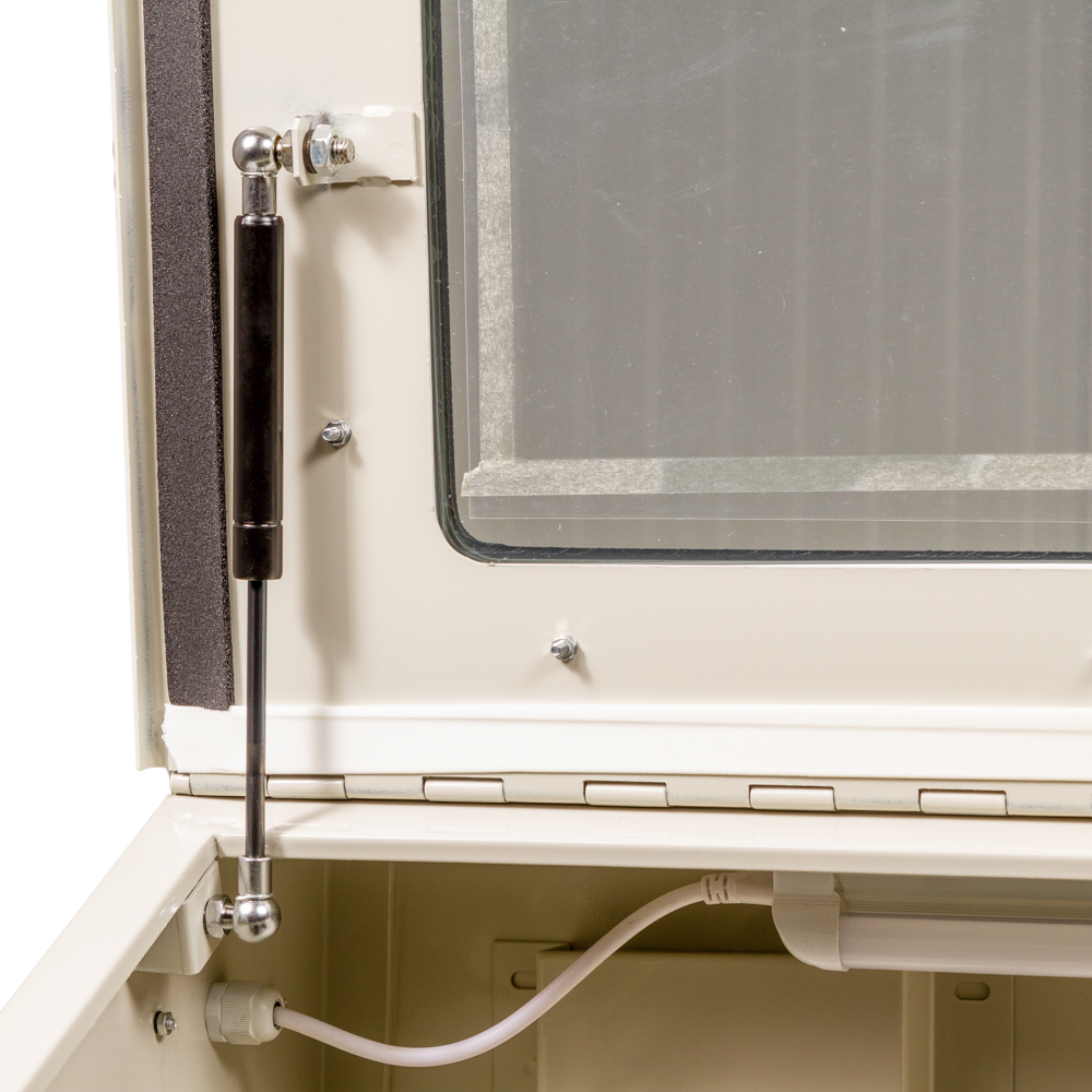 Diese Strahlkabine wird serienmäßig geliefert. 2 x Gasfeder zum Öffnen und Offenhalten des Ventils. 1 x Strahlpistole. 1 x 4-teiliger Düsensatz 1 x Handschuhset. 1 x Beleuchtung. 3 x Schutzfolie. 1 x Luftfilter.