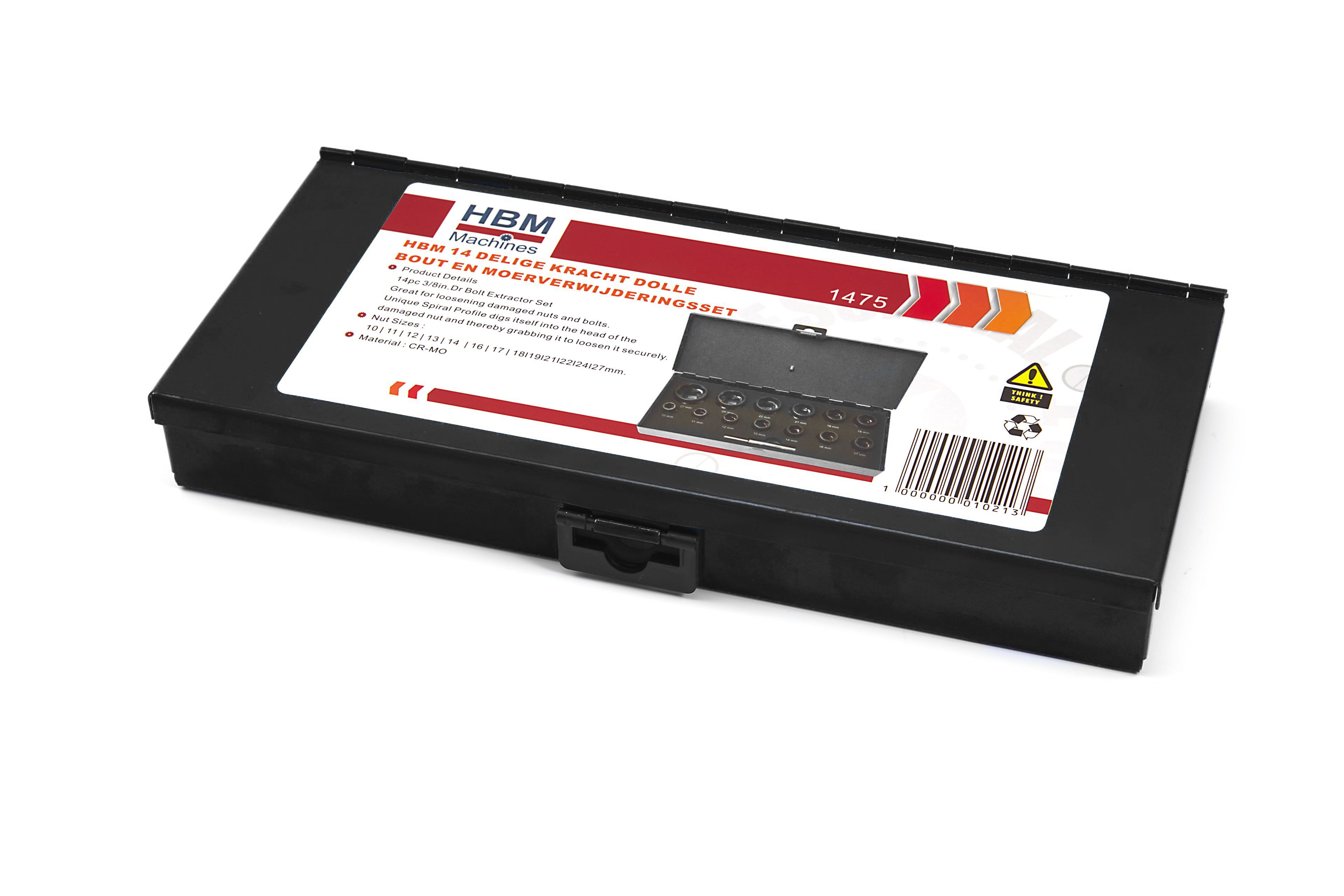 Technische Daten des HBM 14-teiligen kraftvollen Schrauben- und Mutternausbausatzes.