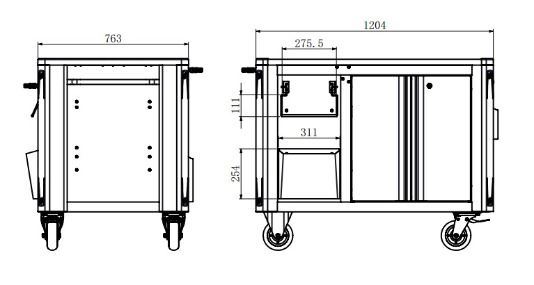 - Verstärkte Arbeitsplatte aus Edelstahl mit integrierten Seitenfächern