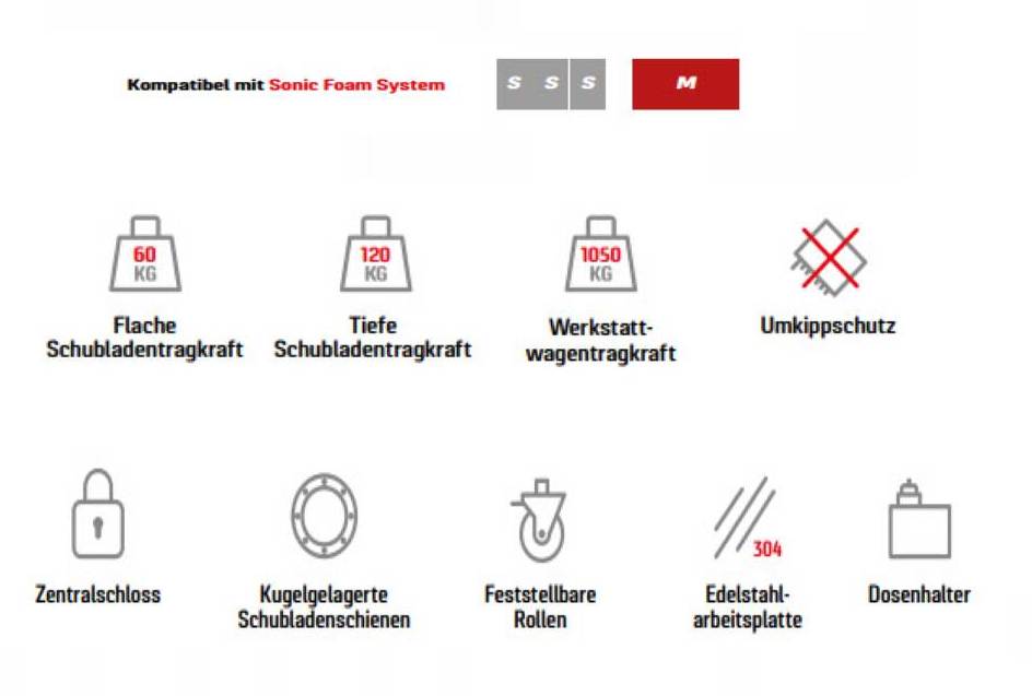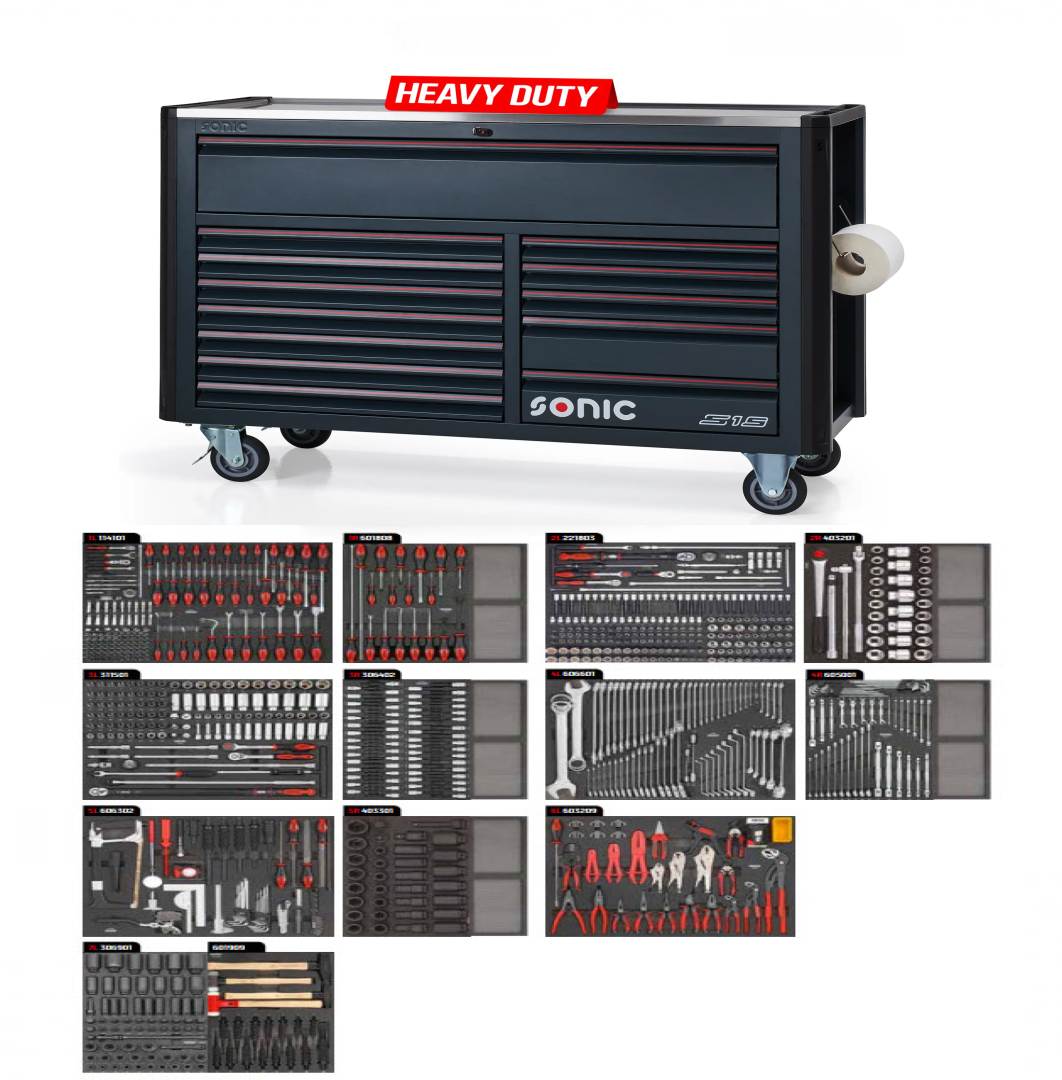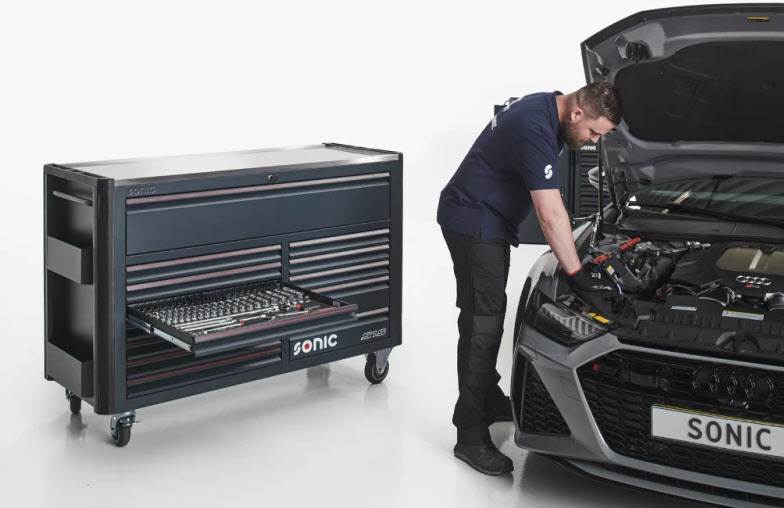 Der Sonic NEXT S15 Werkstattwagen ist das Flaggschiff unter den Werkstattwagen und bietet eine perfekte Kombination aus robustem Design, intelligentem Stauraum und professioneller Ausstattung – ideal für Mechaniker und Werkstätten, die höchste Funktionalität benötigen. Er ist ein echtes Raumwunder mit ergonomischer Arbeitshöhe. Seine robuste Konstruktion vereint maximalen Stauraum mit einer funktionalen Arbeitsfläche – ideal für anspruchsvolle Werkstattumgebungen.