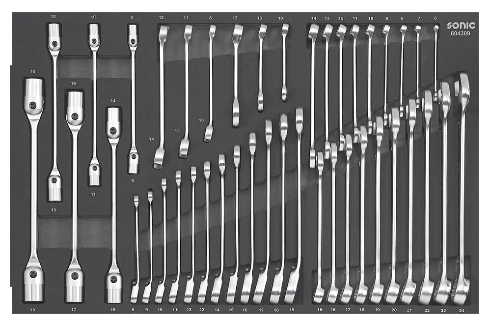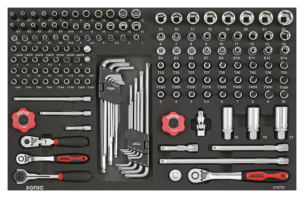 Sonic NEXT S9 Werkstattwagen – schaffen Sie Ordnung in 8 Schubladen, davon 6 bestückt mit 414 Werkzeuge in ordentlichen Platzhaltern