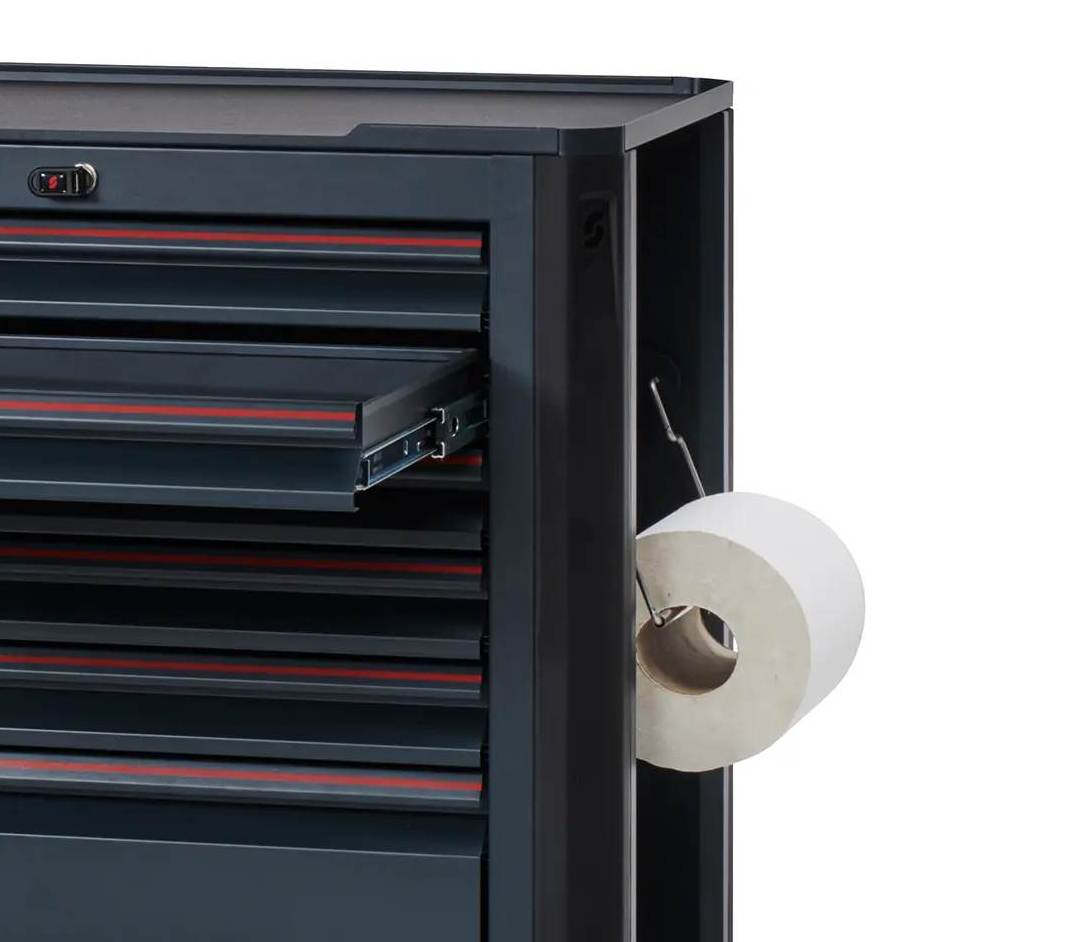 Der schwarze Papierrollenhalter eignet sich als Zubehörteil für die SONIC NEXT Werkzeugwagen S8, S10 , S11, S13, S14 oder S15. Die Halter lassen sich einfach an den Werkstattwagen schrauben.