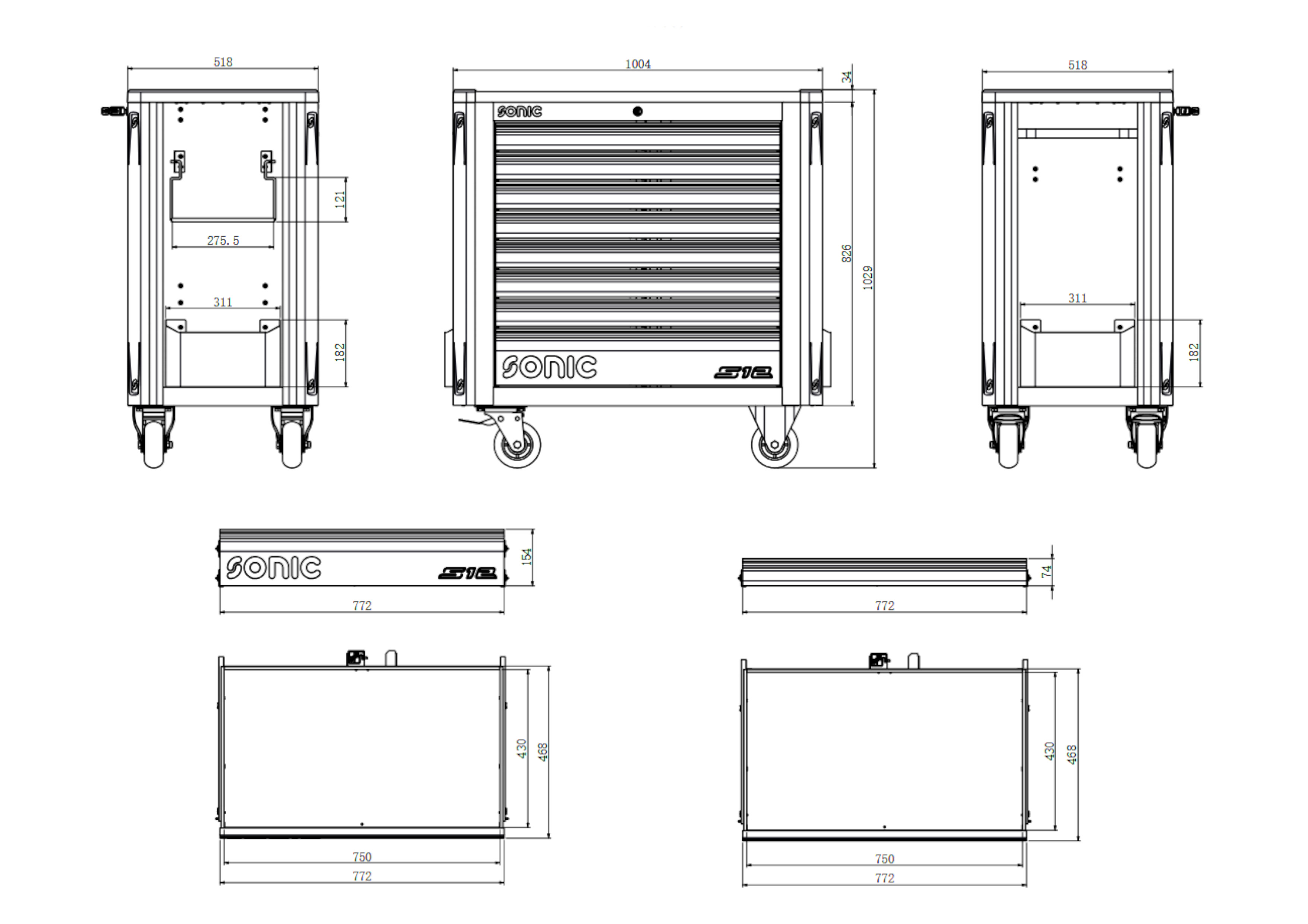 Sonic Werkstattwagen NEXT S12, gefüllt 575-teilig