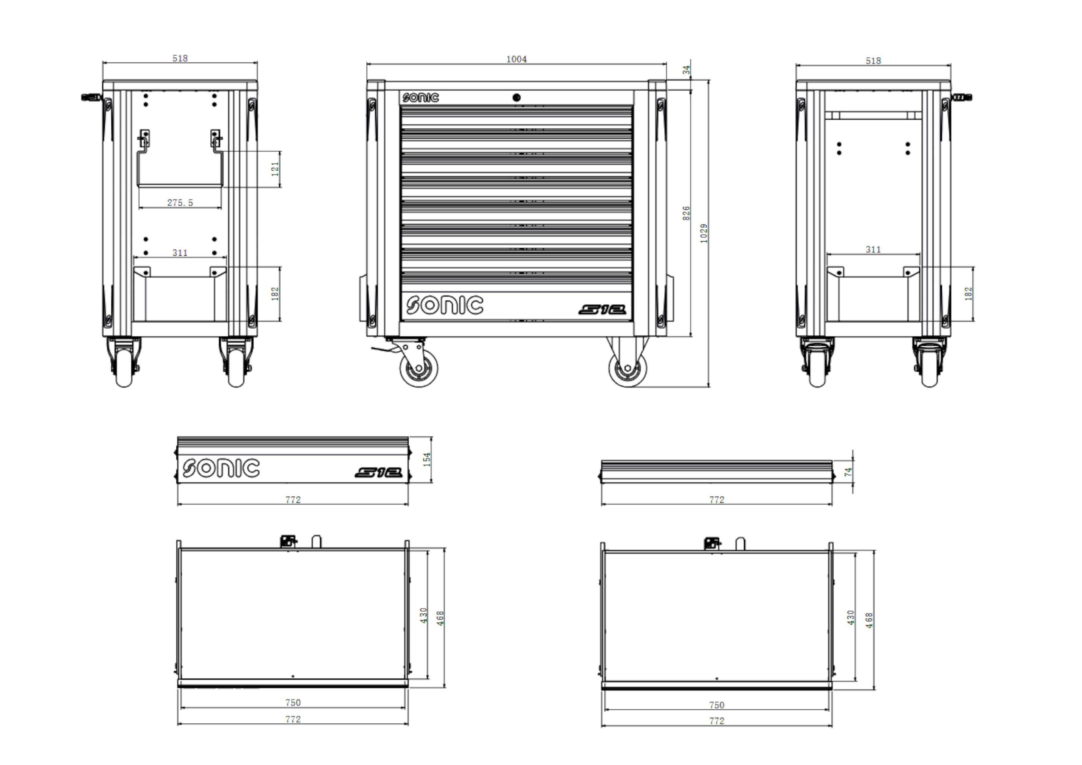 Sonic Werkstattwagen NEXT S12, gefüllt 644-teilig