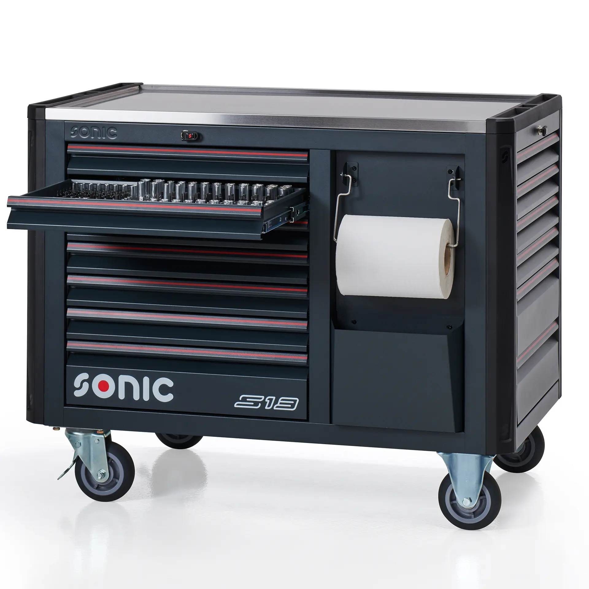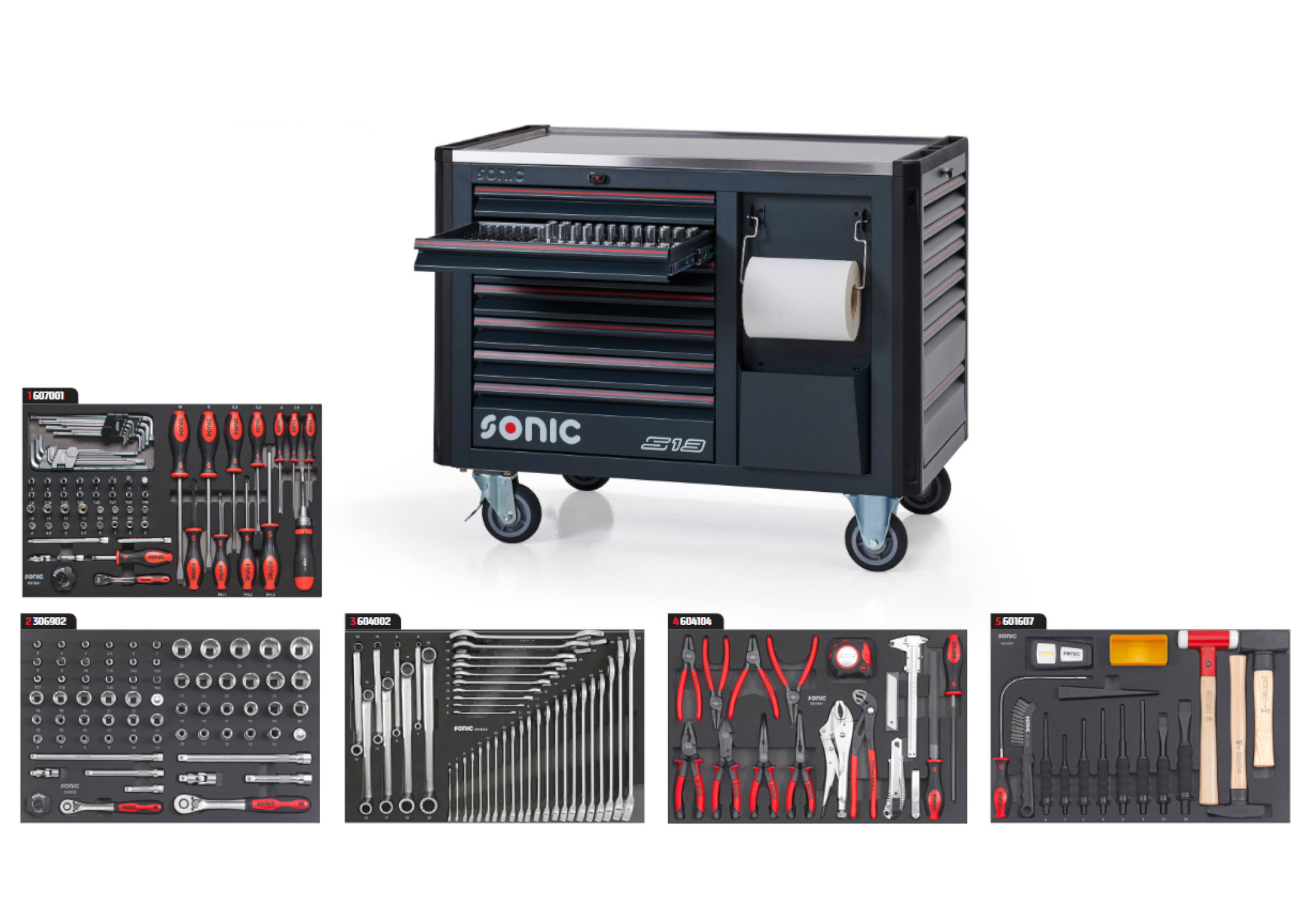 Der Sonic NEXT S13 Werkstattwagen ist die Wahl für Mechaniker, die nach fortgeschrittenen bis Experten Werkzeugsätzen suchen. Der NEXT S13 ist ein einzigartiger Werkstattwagen in unserer Produktpalette. Er ist von kleiner Statur, nimmt aber mit 120cm Länge und 76cm Breite eine große Haltung ein. Seine größere Standfläche und ideale Arbeitshöhe ermöglichen eine einzigartige Kombination aus Stauraum und Arbeitsplatz.