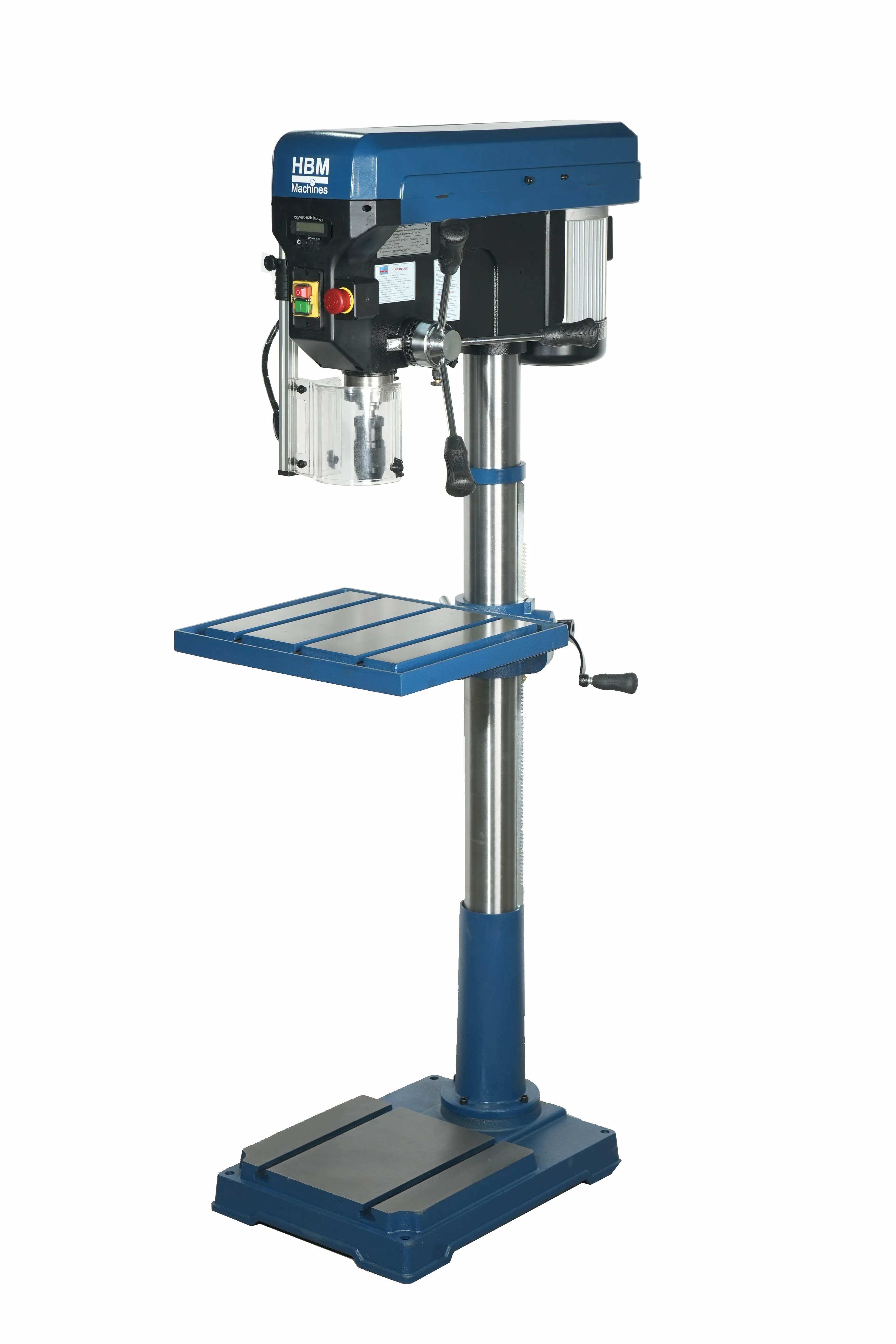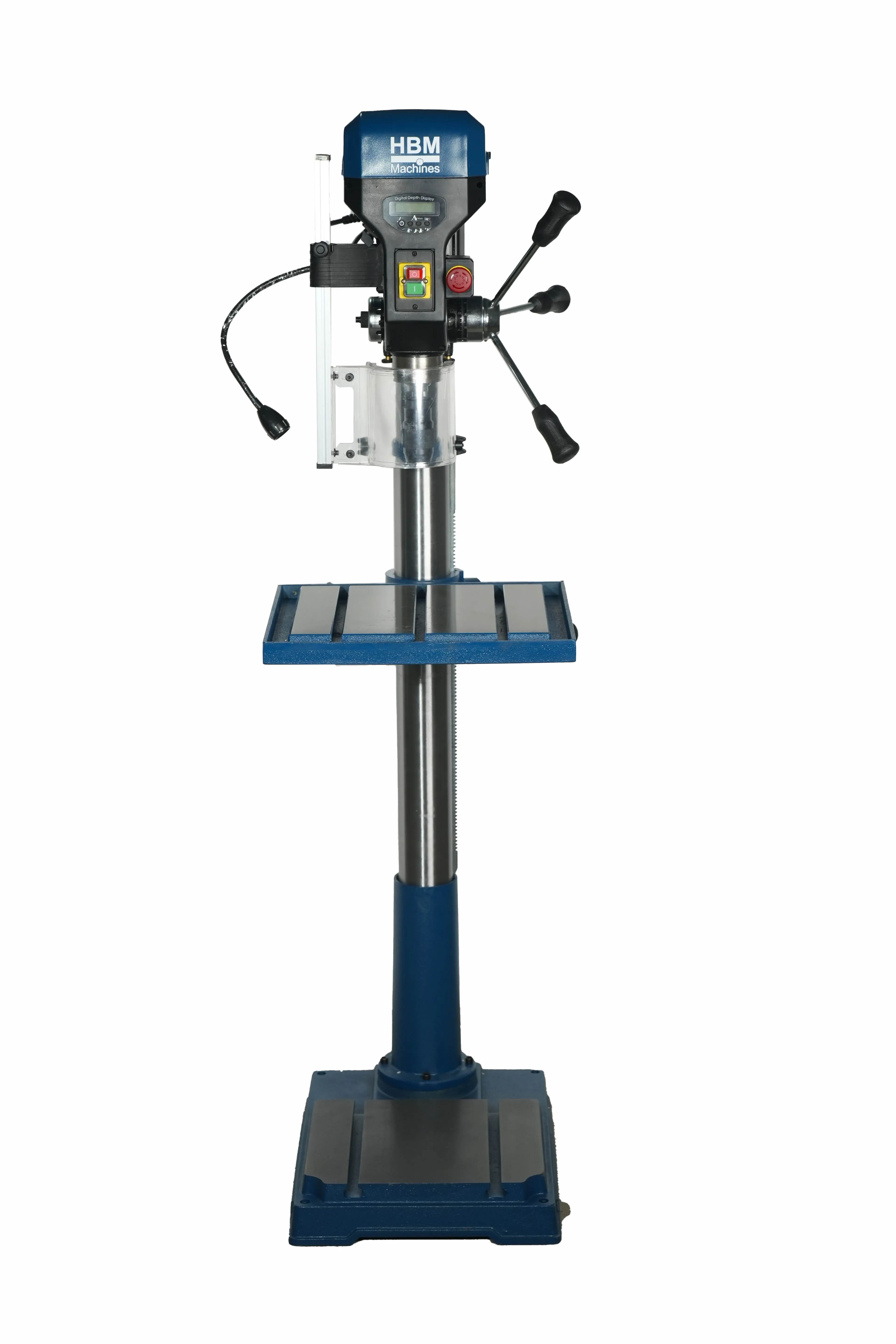 Die leistungsstarke Säulenbohrmaschine im modernen Design bietet Ihnen eine hohe Qualität für Ihre Werkstatt. Die Maschine kann einfach in der Werkstatt aufgestellt und so jederzeit genutzt werden. Ein Präzisions-Schnellspannbohrfutter mit Stift ist bereits an der Maschine montiert. Die angebrachte, höhenverstellbare Arbeitsfläche kann einfach in den optimalen Winkel gekippt werden. Um Ihre Arbeit im vollen Umfang auszuleuchten, ist eine LED Arbeitsleuchte an der Standbohrmaschine angebracht. Außerdem ist ein digitaler Tiefenanschlag an der Maschine angebracht, mit dem die Tiefe der Bohrung abgelesen werden kann. Die Spindel ist durch die ARBO und CE zugelassene Schutzhülle gesichert. Dadurch sind Sie auch bei der Nutzung gut geschützt. Ein Austreibkeil für die Morsekegel liegt der Lieferung bei. Eingesetzt wird dieses Modell vor allem in Handwerksbetrieben, aber auch in den heimischen Werkstätten kann die Bohrmaschine einfach aufgestellt und genutzt werden.