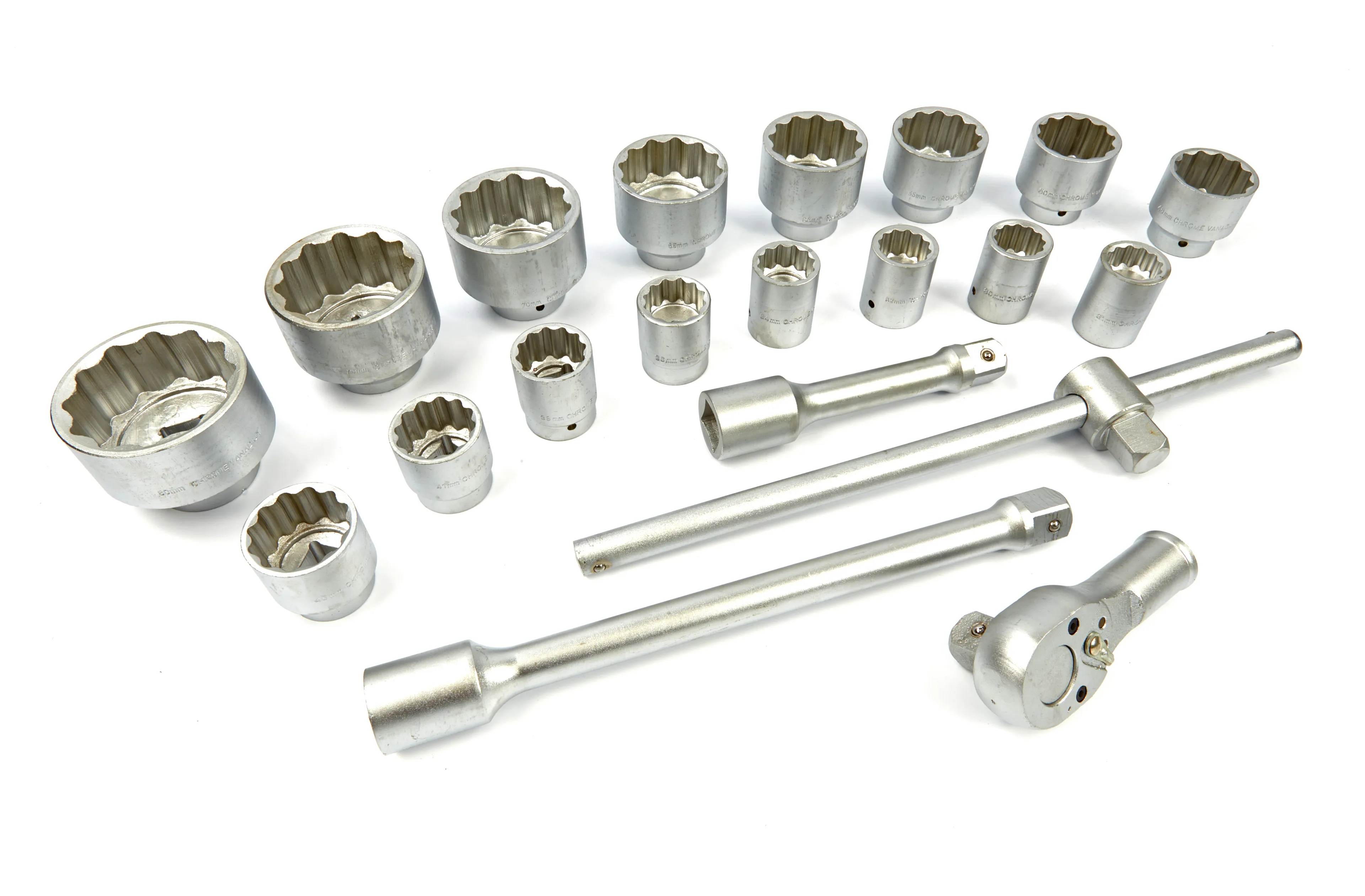 Dieses 21-teilige 1-Zoll-Steckschlüsselsatz ist robust, vielseitig, professionell. Eine umfangreiche Ausstattung für vielfältige Einsazuzwecke.