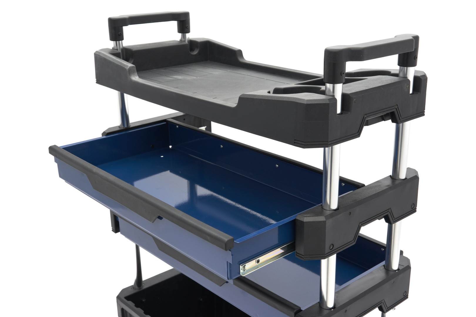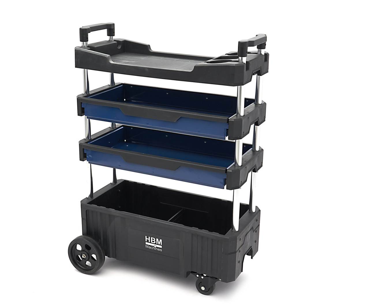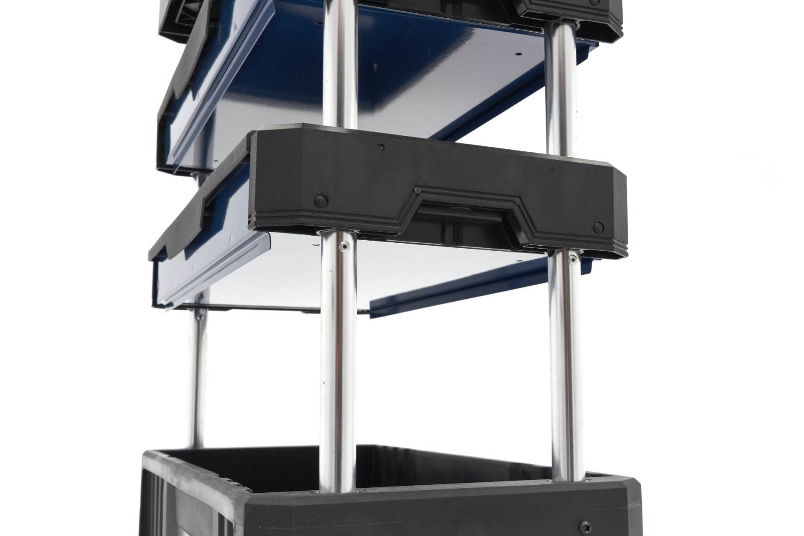 Bei der Arbeit ist es wichtig, dass Sie schnell und einfach auf Ihre Sachen zugreifen können. Dieser Transportwagen bietet vier Ablageflächen für Werkzeuge und Zubehör und ist leicht zu bewegen. Der Wagen kann ein beachtliches Gewicht von insgesamt 60 kg tragen und ist faltbar. So können Sie den Wagen leicht zu anderen Arbeitsplätzen mitnehmen. Oder Sie können ihn an Ihrem festen Arbeitsplatz stehen lassen, um Dinge zu verstauen und trotzdem schnell darauf zugreifen zu können.