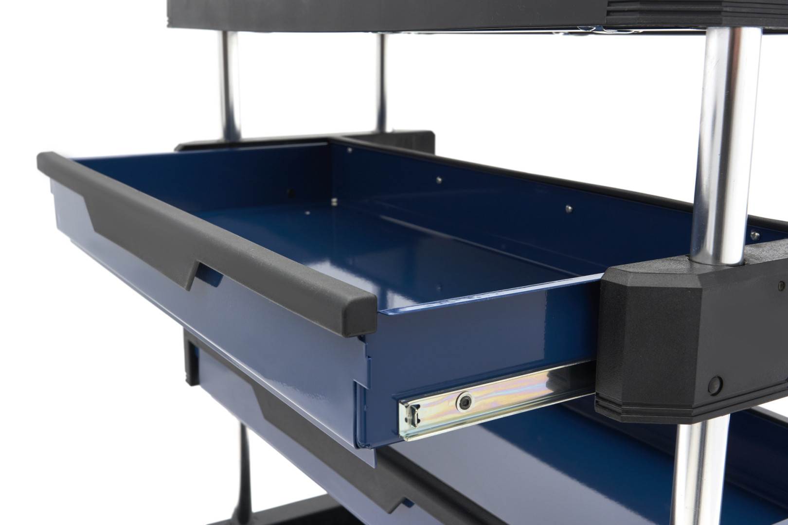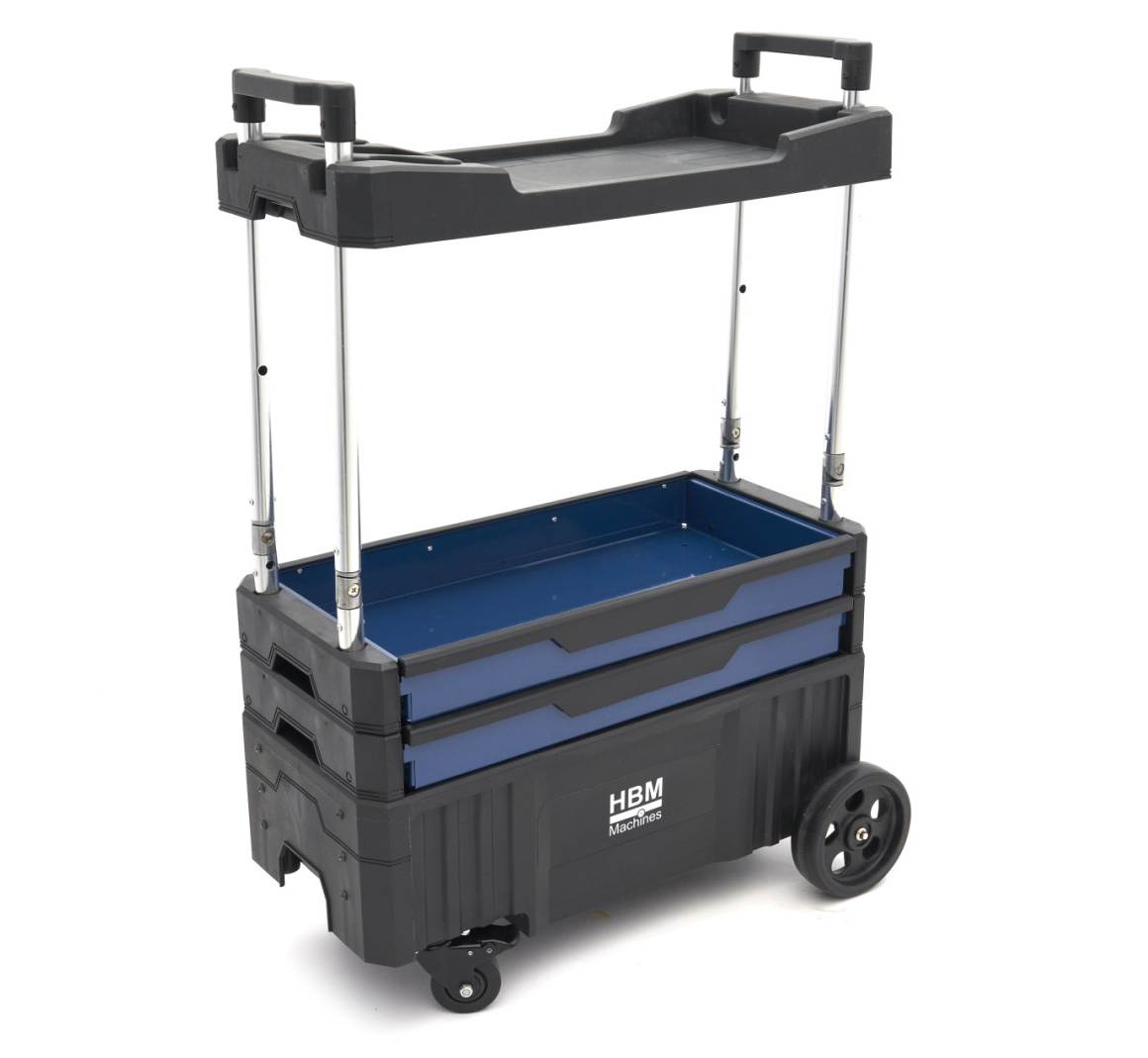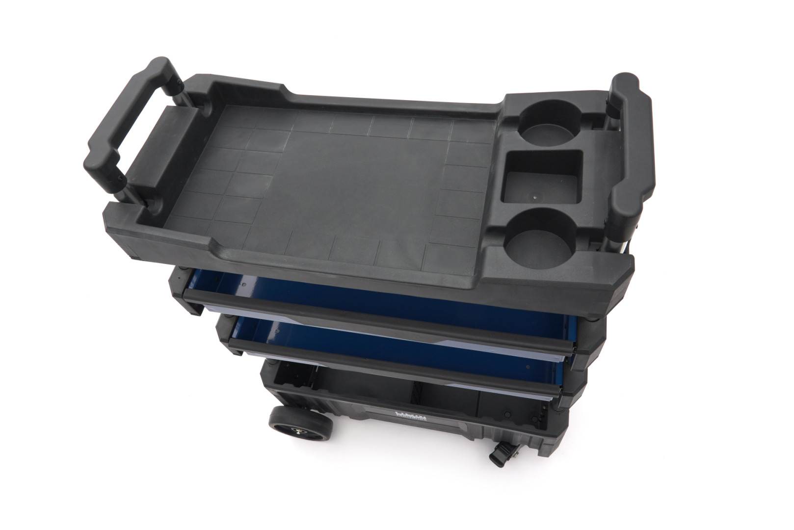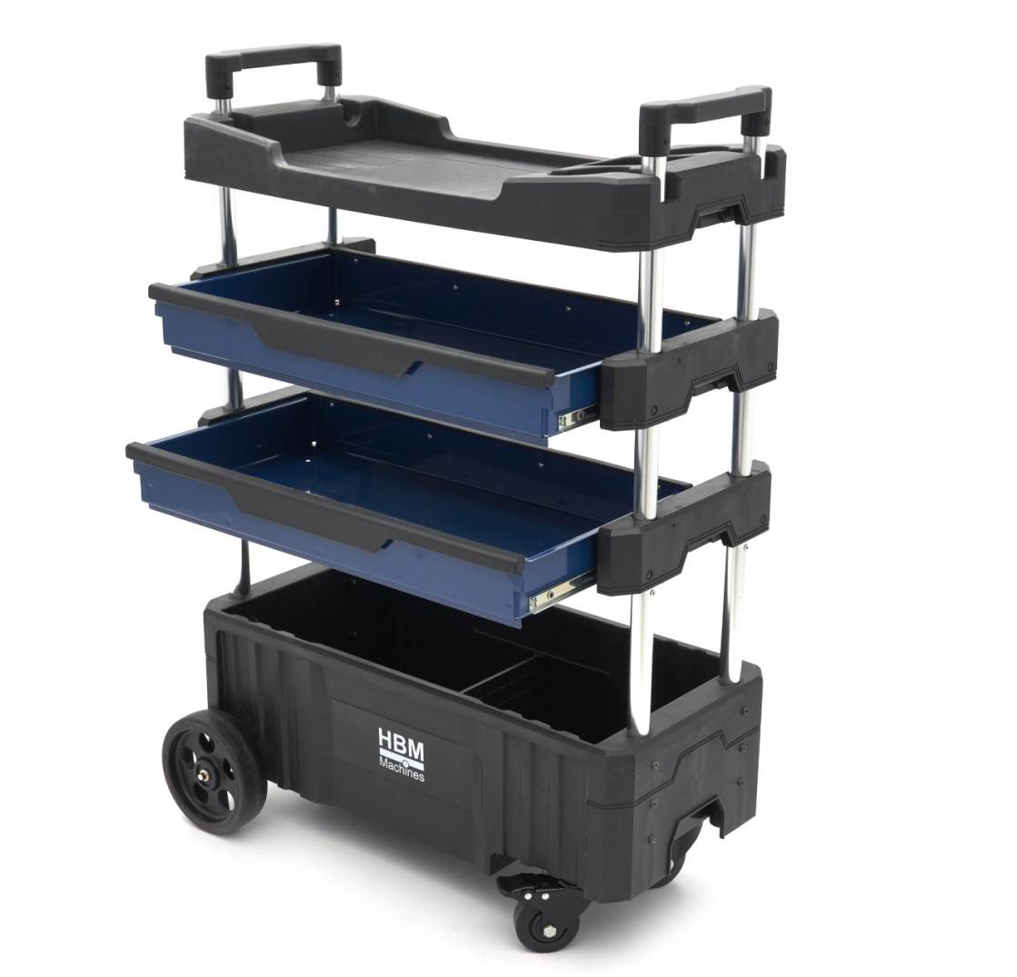 Bei der Arbeit ist es wichtig, dass Sie schnell und einfach auf Ihre Sachen zugreifen können. Dieser Transportwagen bietet vier Ablageflächen für Werkzeuge und Zubehör und ist leicht zu bewegen. Der Wagen kann ein beachtliches Gewicht von insgesamt 60 kg tragen und ist faltbar. So können Sie den Wagen leicht zu anderen Arbeitsplätzen mitnehmen. Oder Sie können ihn an Ihrem festen Arbeitsplatz stehen lassen, um Dinge zu verstauen und trotzdem schnell darauf zugreifen zu können.
